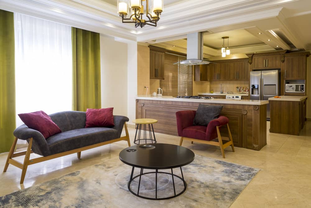 آپارتمان لوکس دو خواب واقع در طبقه همکف با کلیه لوازم جهت اقامت روزانه و هفتگی در کامرانیه