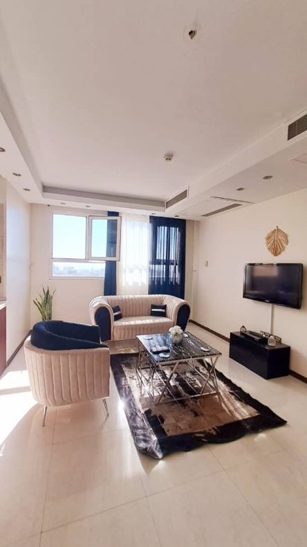 آپارتمان تمیز یکخوابه مبله در طبقه آخر برج نزدیک مرکز خرید اپال واقع در بلوار فرحزادی با منظره عالی و سرویس ایرانی و فرنگی جهت اقامت کوتاه و بلند مدت