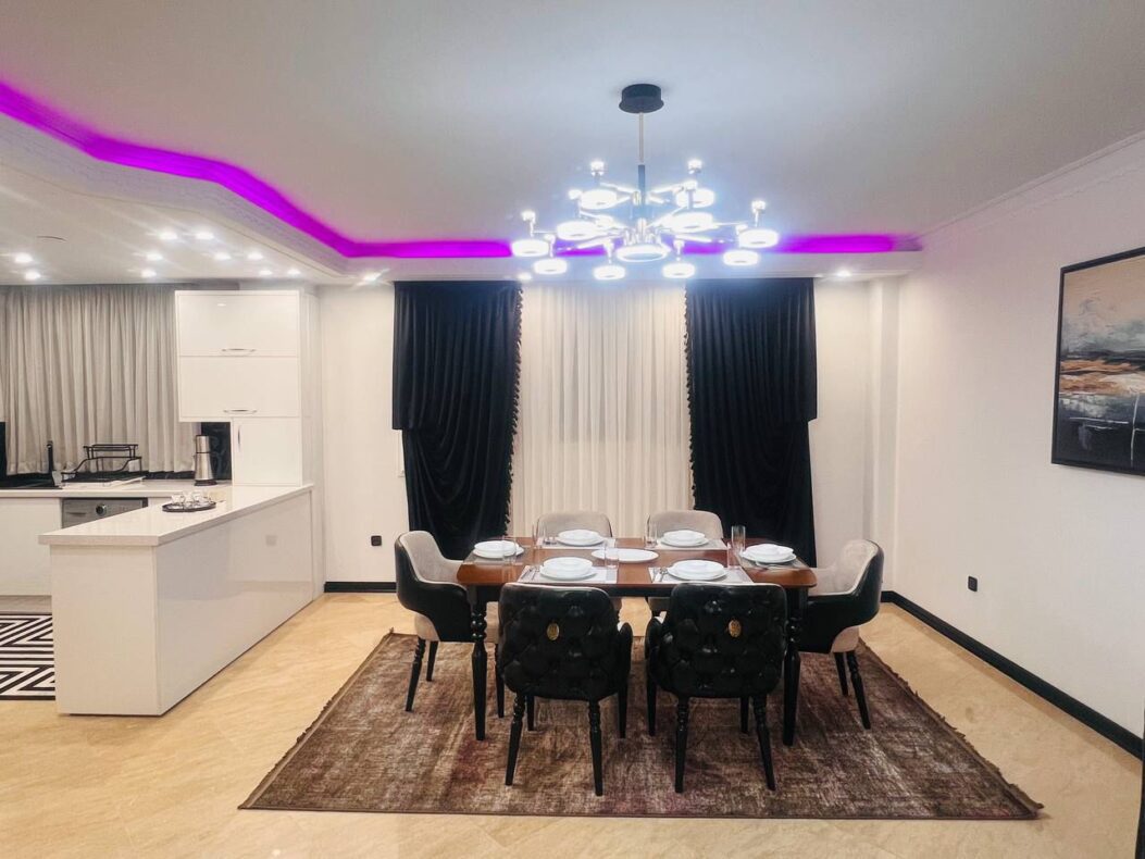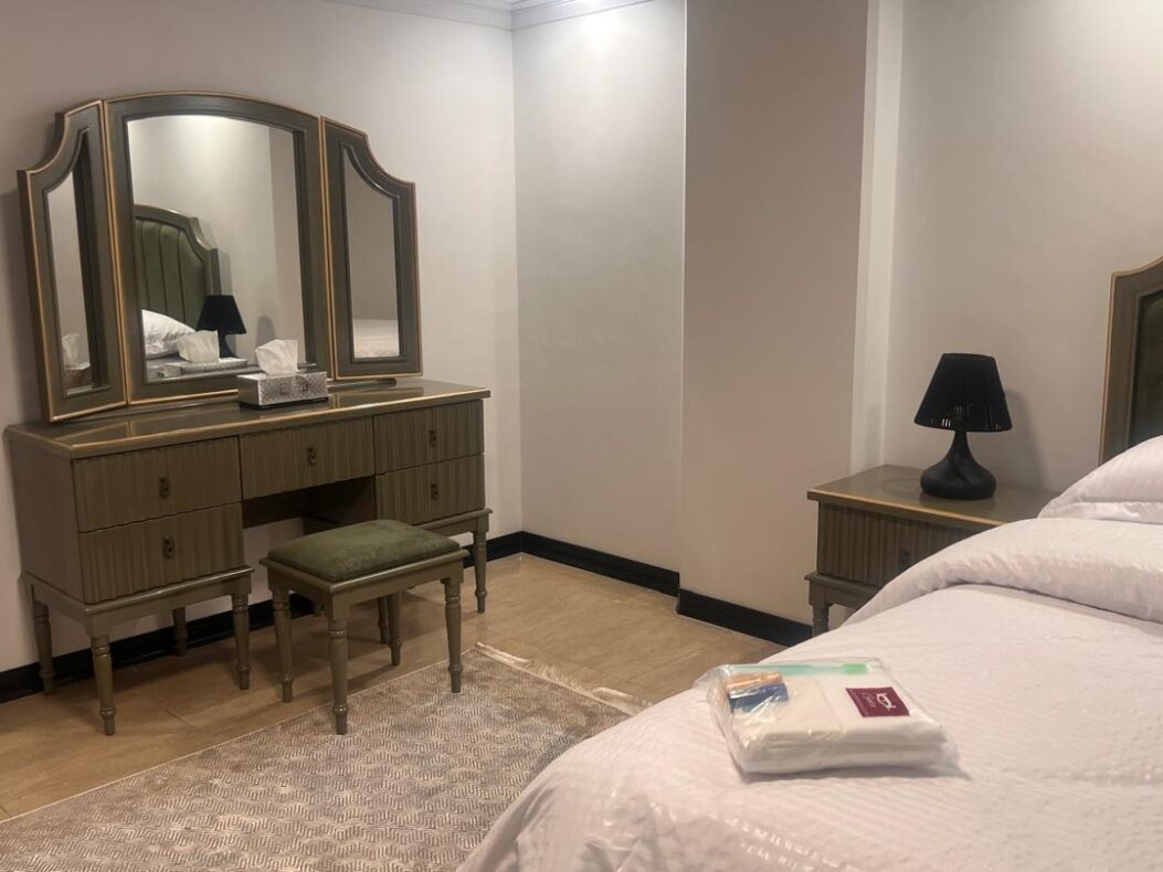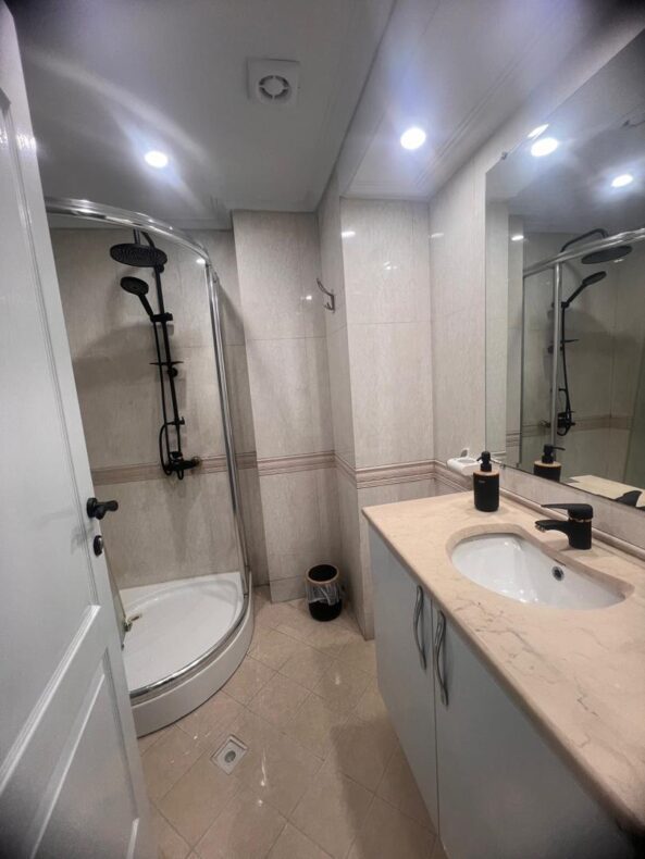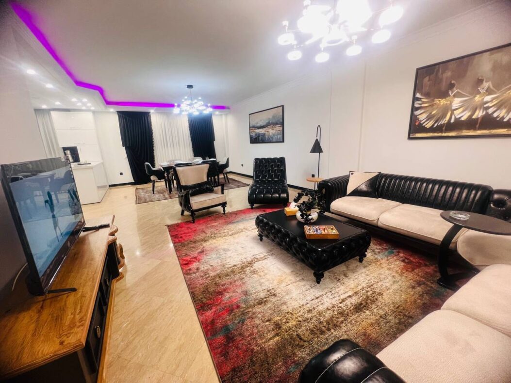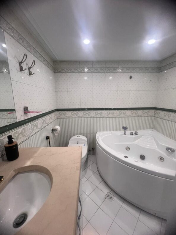اپارتمان لوکس سه خواب تازه مبله شده در 5 طبقه تک واحدی با مشاعات آبی در زعفرانیه با آسانسور پارکینگ نگهبانی و کابین حمام و جکوزی داخل حمام (دوساعت سانس استخر درروز)